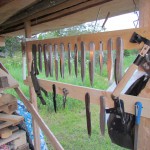 Flew axes, shovels, knives, nails, screwdrivers, scissors, needles, plates and other items. Targets was fixed and swayed.